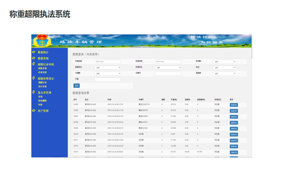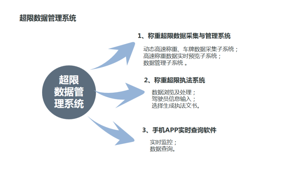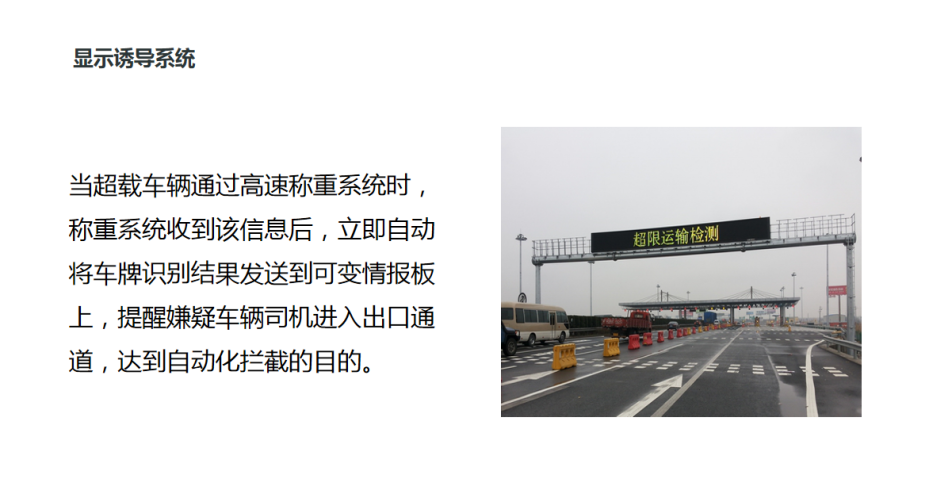 無人值守不停車高速預檢稱重系統和低速精檢稱重系統結合,治理超載檢測的模式具備自動攔截、自動處理的能力,具有檢測效率高,檢測針對性強的特點。